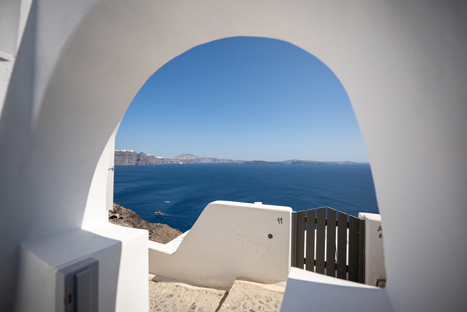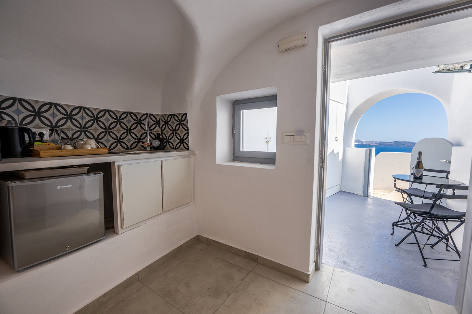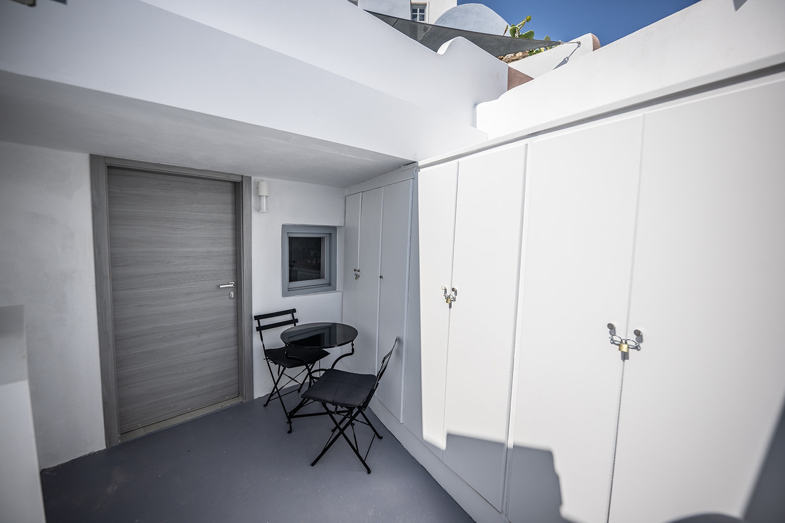 Step outside to your private furnished patio—the perfect spot to relax with a morning coffee or unwind after a day exploring Oia.