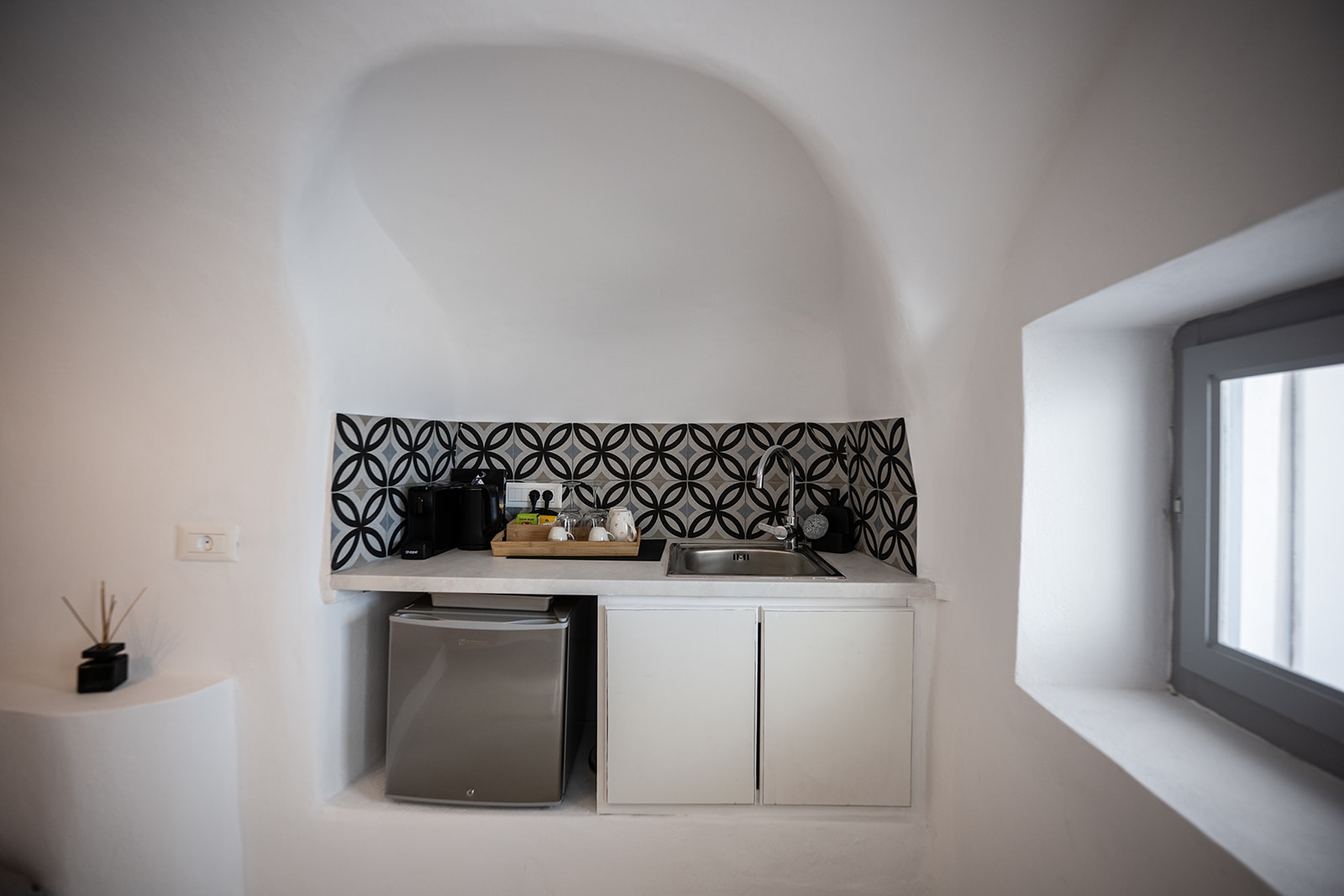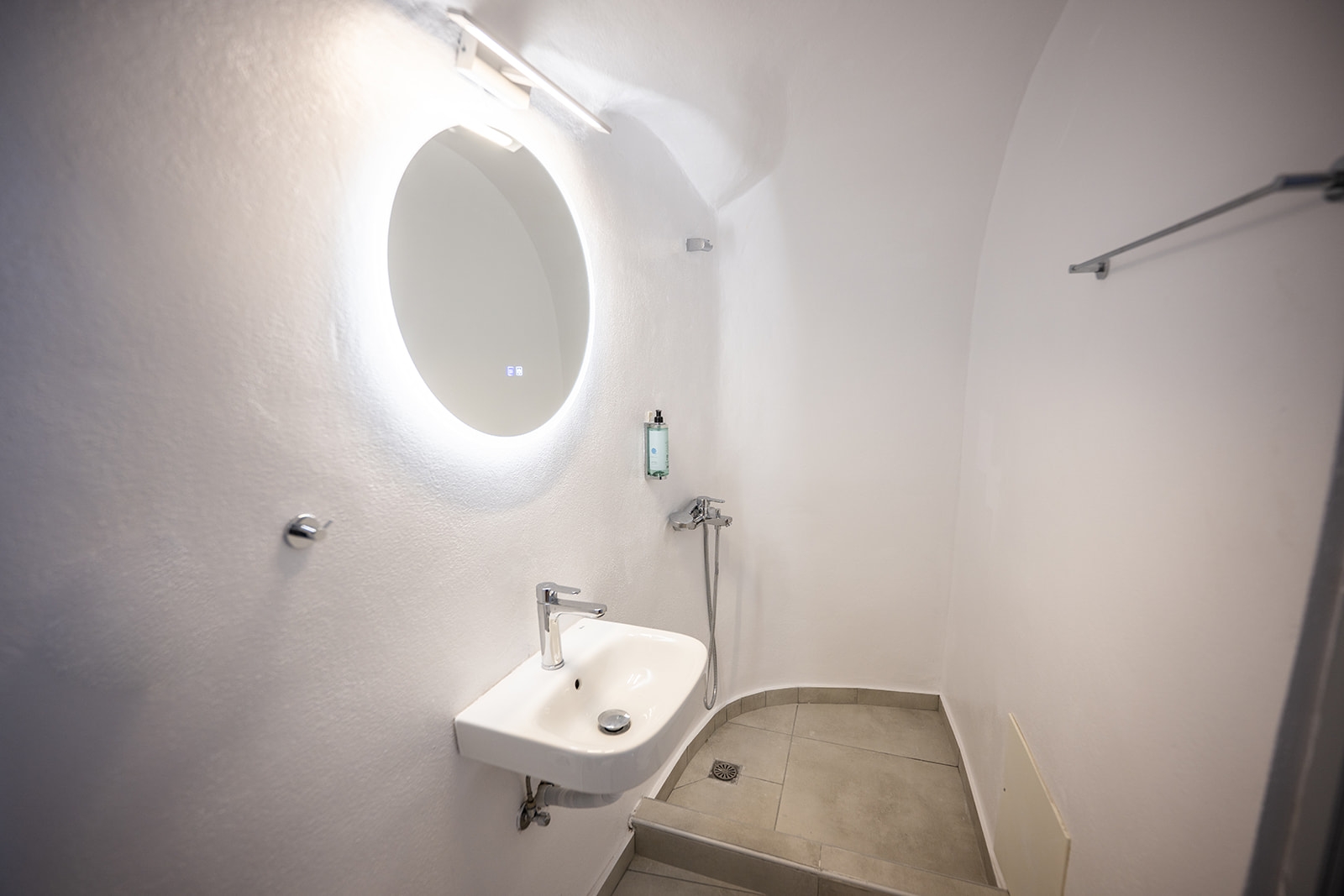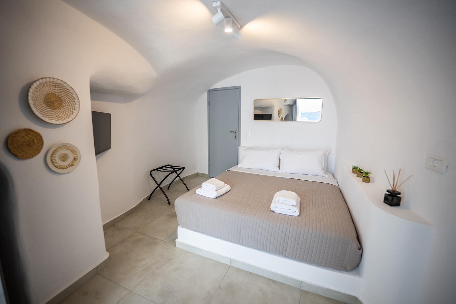 This charming cave-style suite offers a cozy and tranquil retreat for two. Featuring a private entrance, the air-conditioned suite includes one bedroom, a sleek bathroom with shower and hairdryer, and a comfy double bed for a restful night’s sleep.