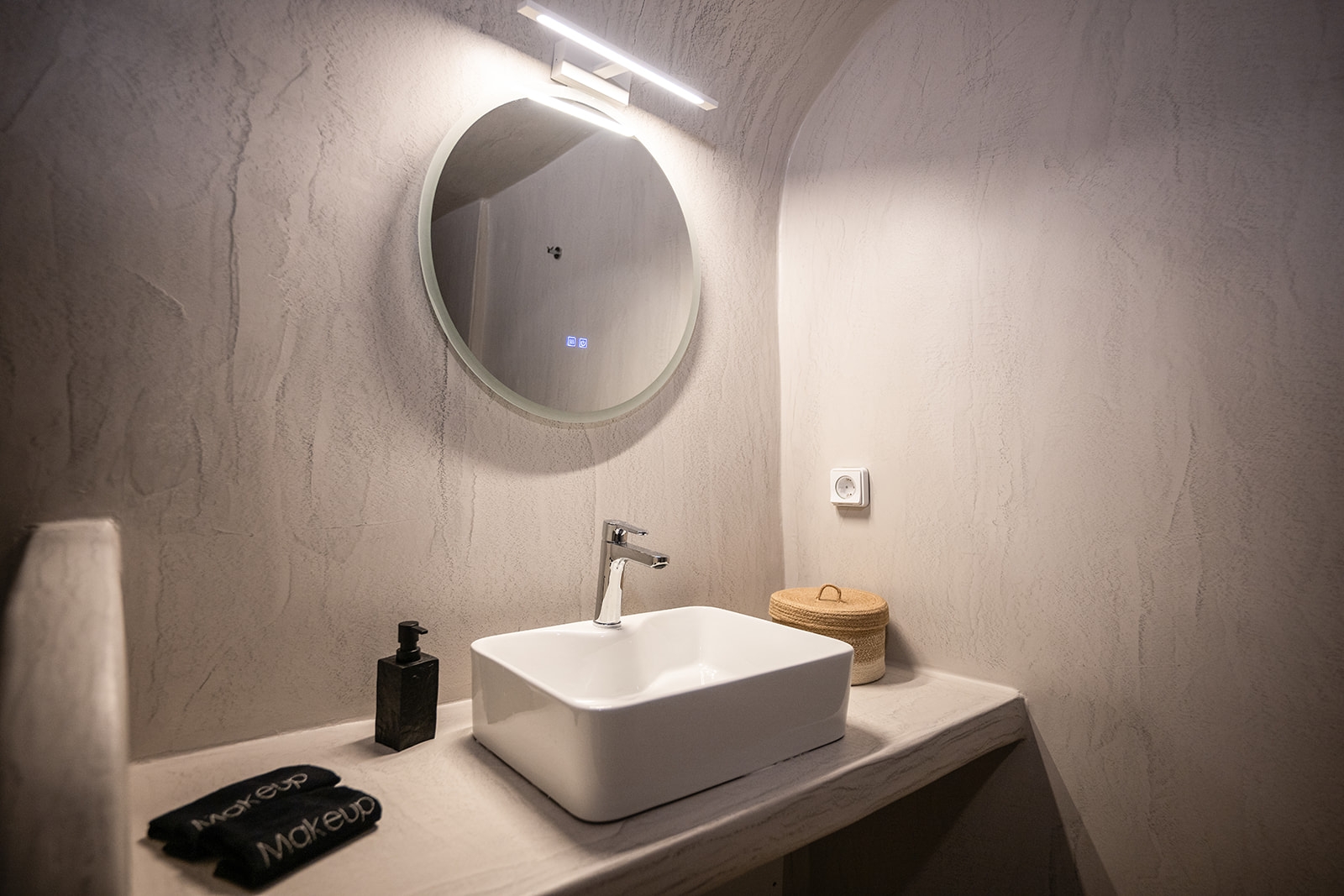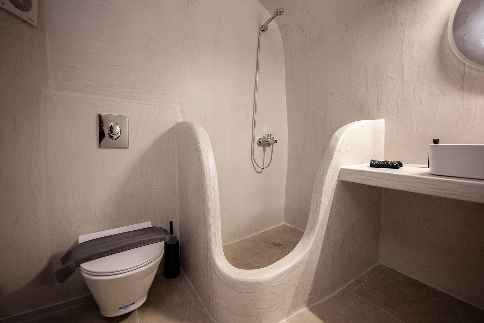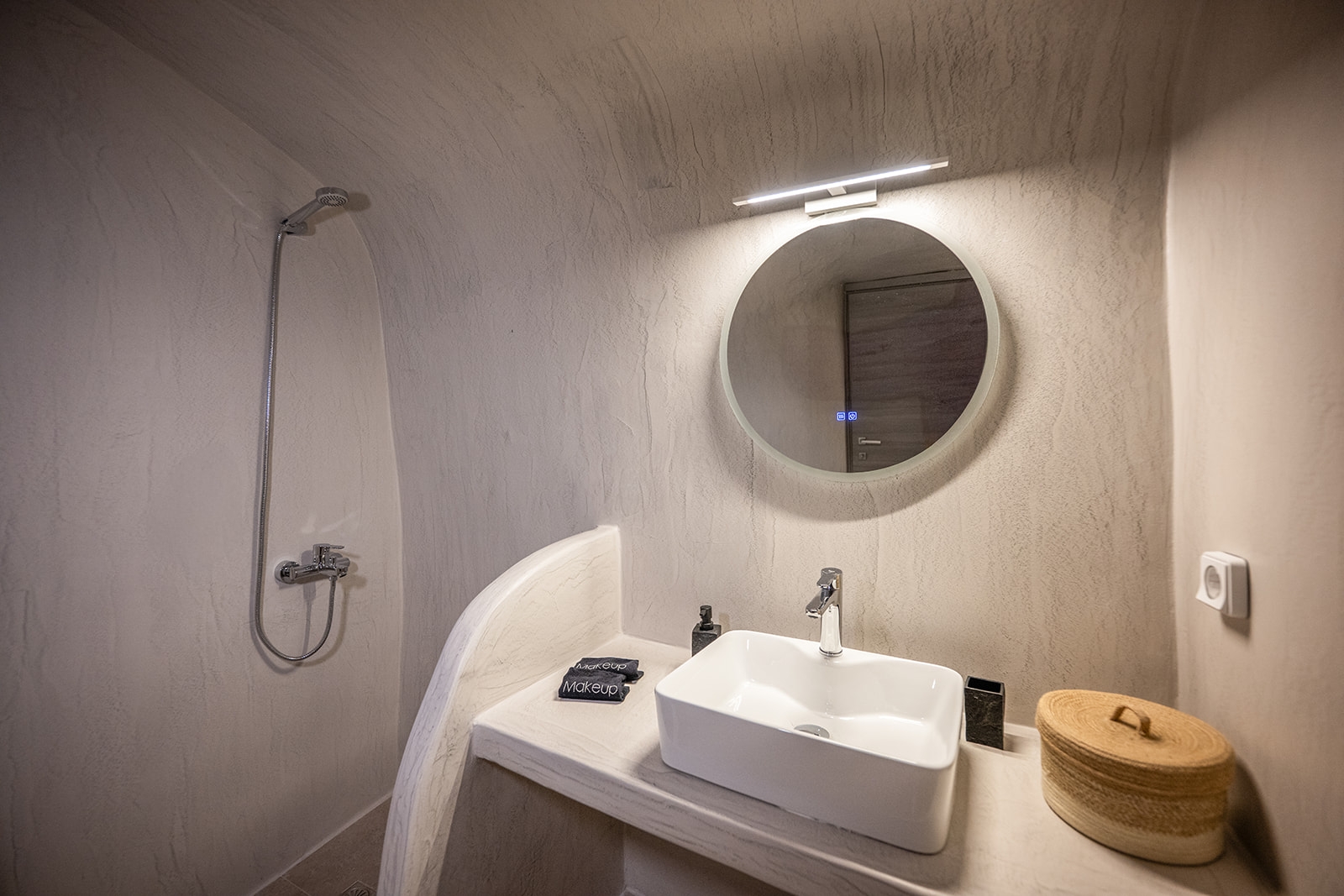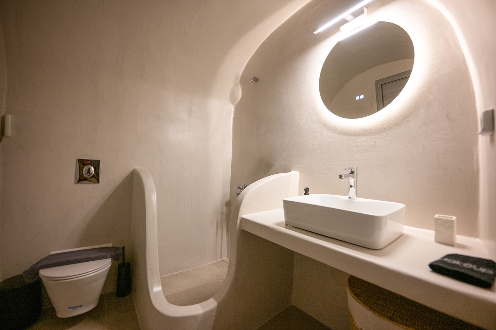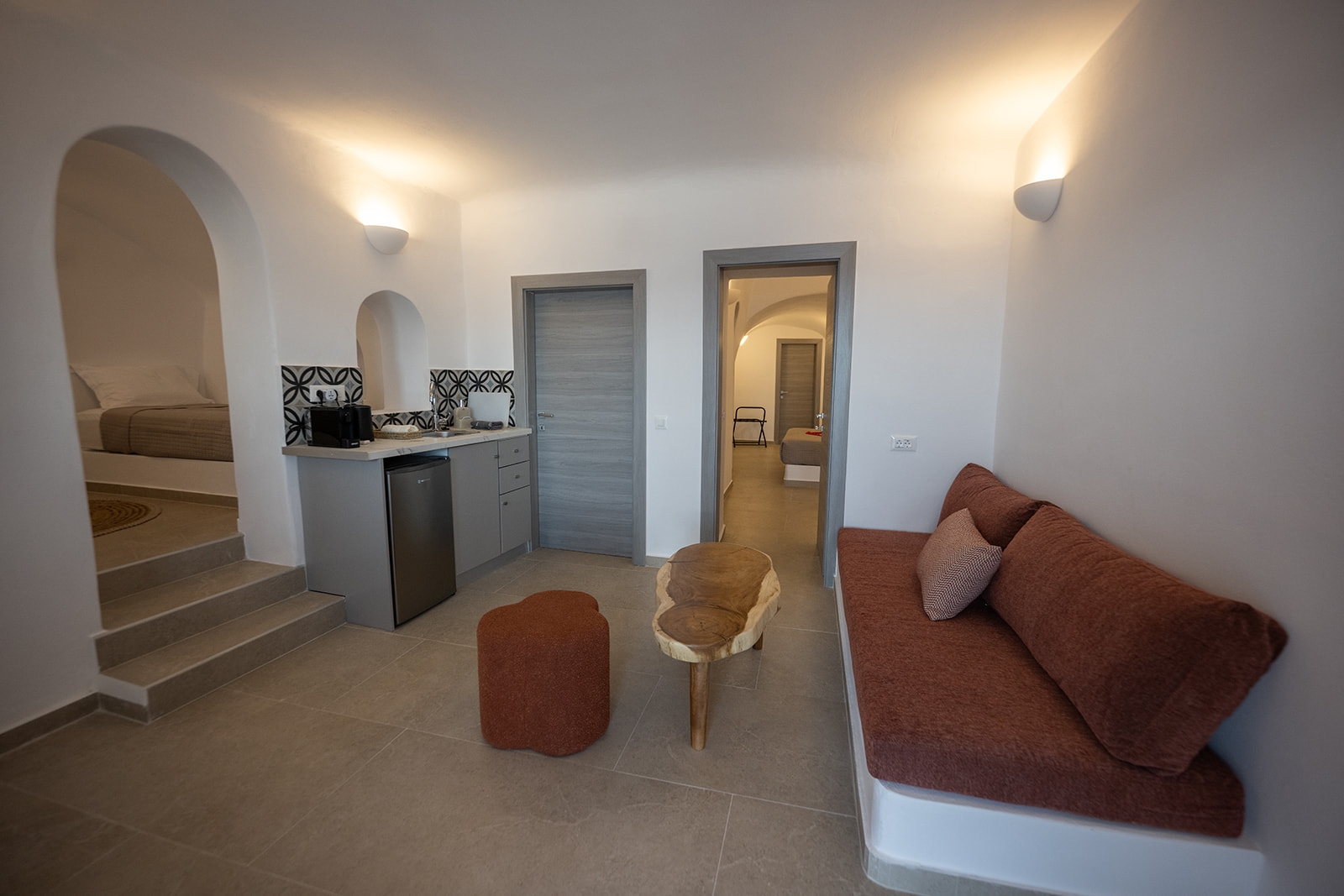 With a private entrance, air conditioning, soundproof walls, and a flat-screen TV, this villa blends traditional Cycladic charm with modern amenities for a relaxed yet refined Santorini experience.